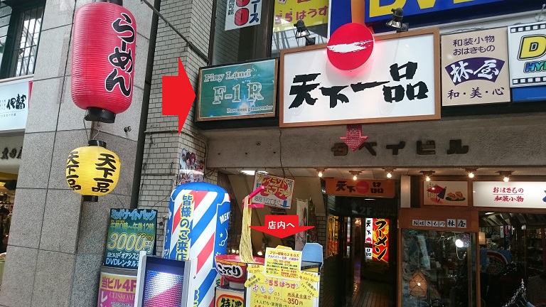 ⑨天下一品さんの隣に「Play Land F-1R」の看板があるので、地下に降りればゴールです