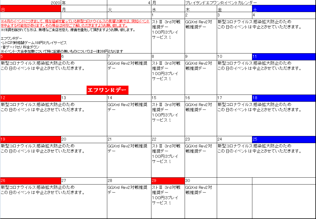 4月のイベント大会を全て中止とさせていただきます。