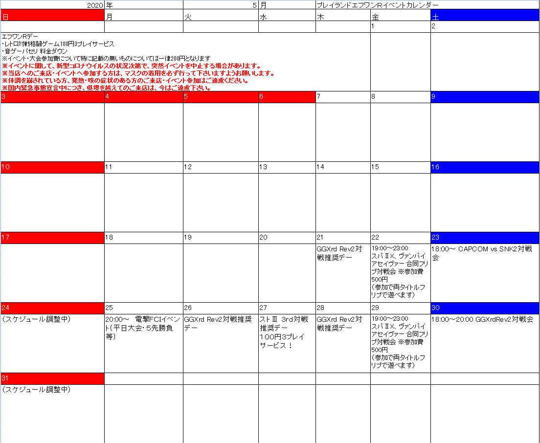 5月に関しては只今スケジュール調整中につき、