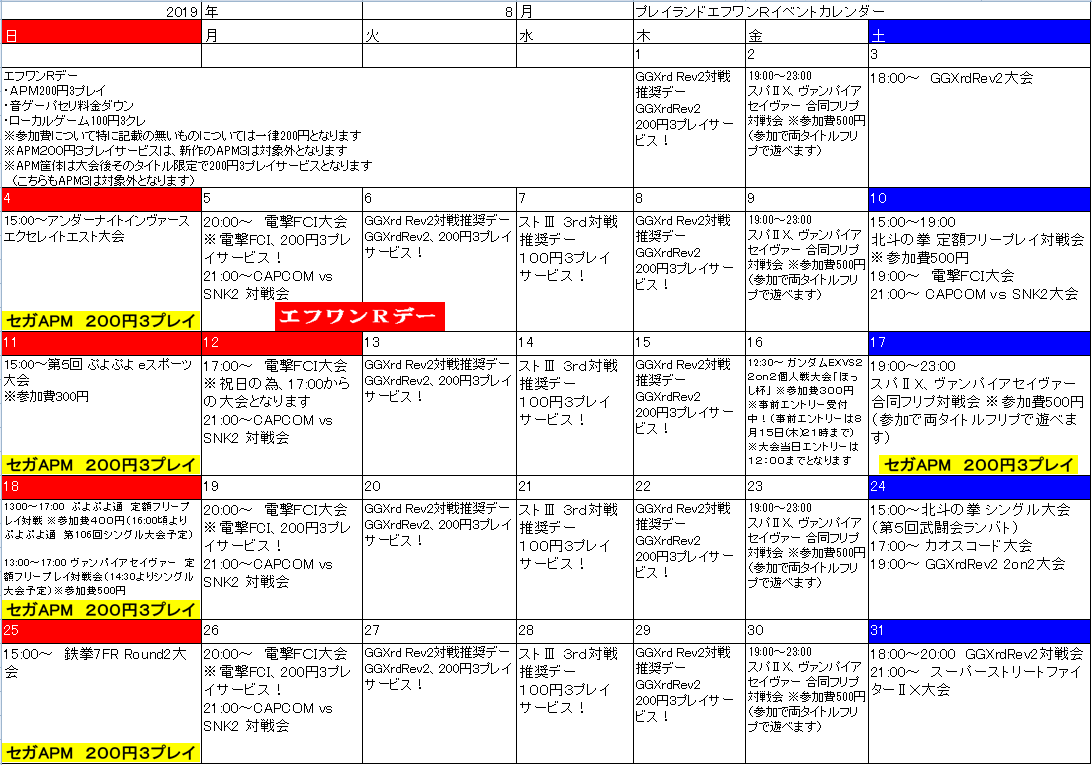 月例大会、定額フリープレイ、8月もイベント盛り盛りですので、遊びに来てくださいね!