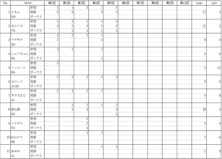 更新が遅れましたので、第4回と第5回の結果を一緒に