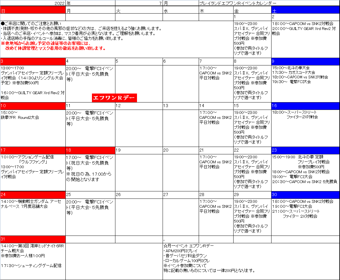 7月もプレイランドエフワンRをよろしくお願い致します。