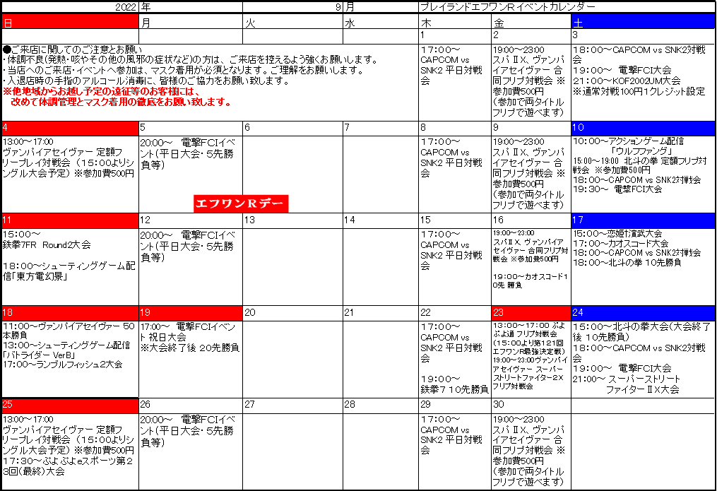 9月もプレイランドエフワンRをよろしくお願い致します。