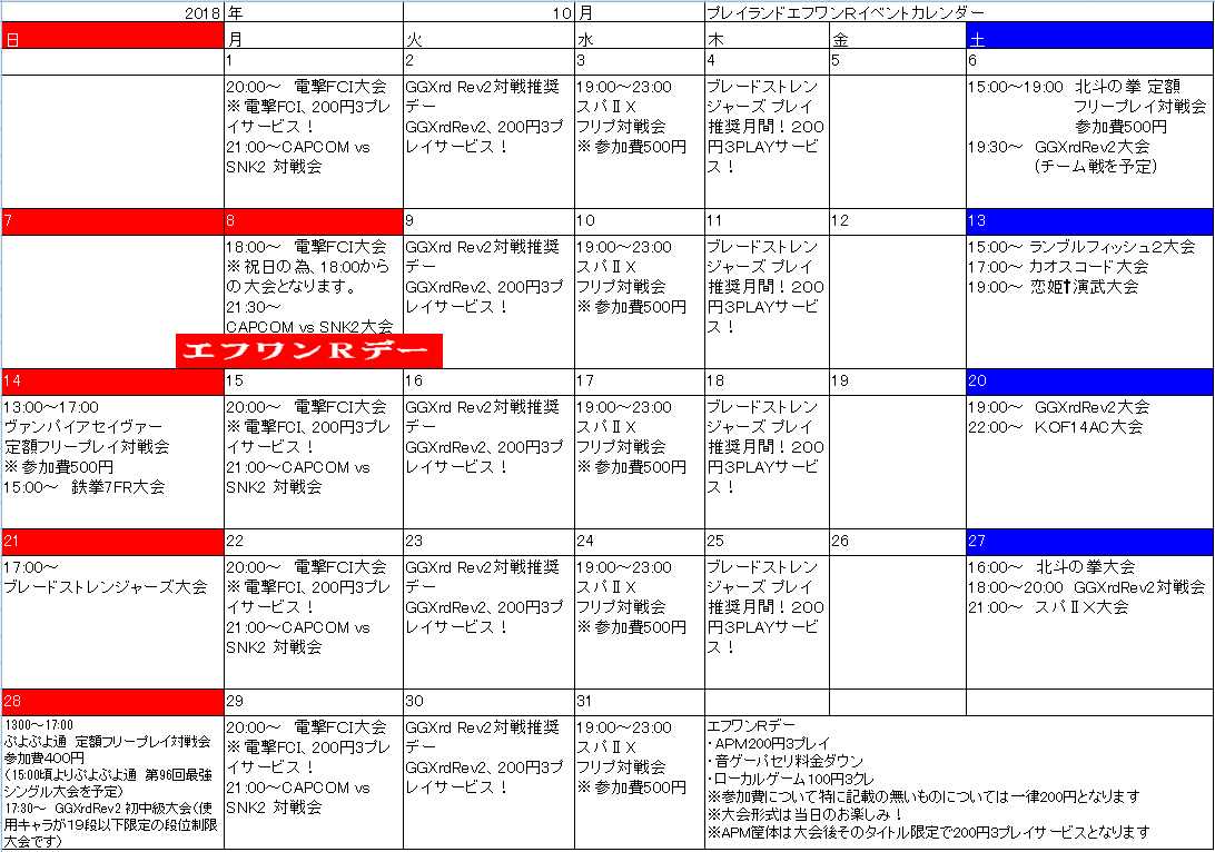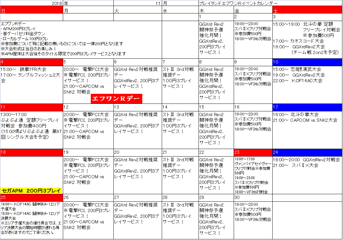 11月の開催タイトルはKOF14ACとなります。日時はカレンダーに表記してありますが