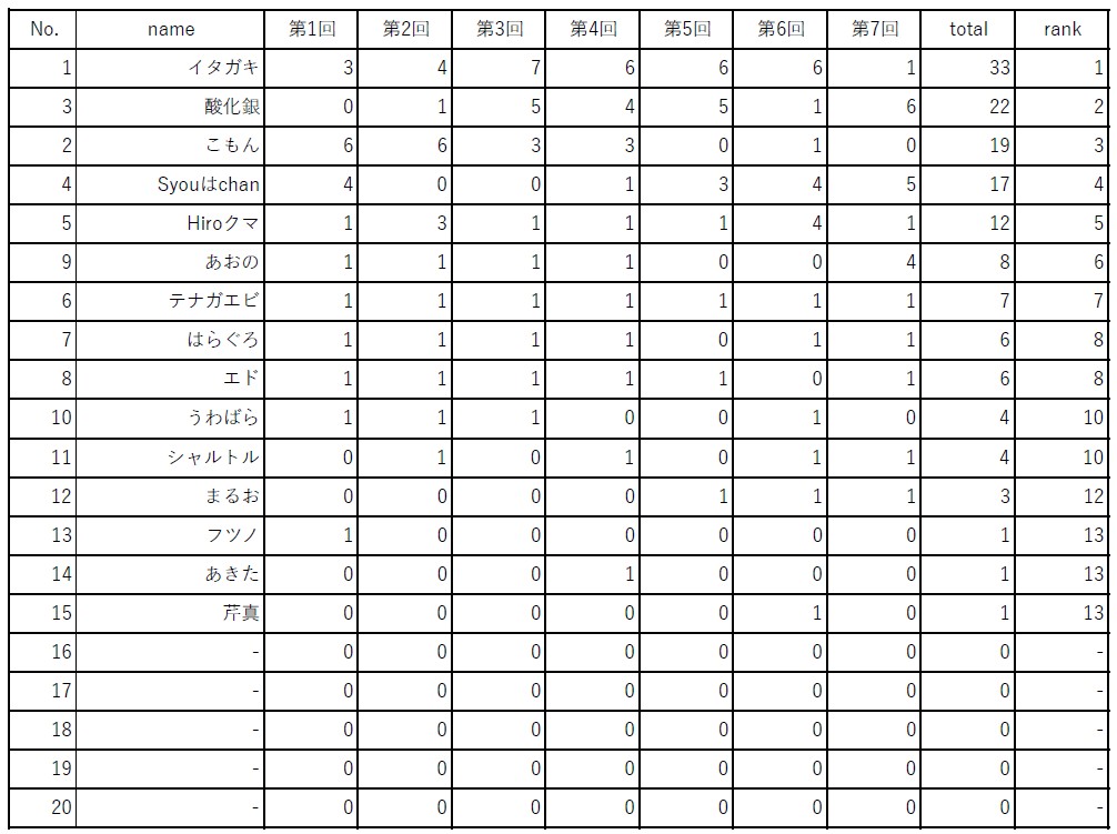 前回優勝者に勝利:シYouはChan!(ラオウ) 2pt