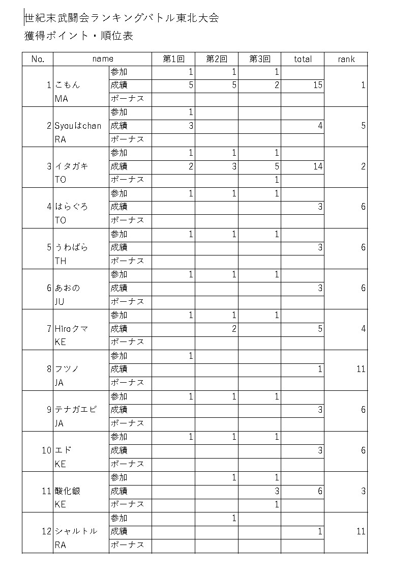 かつ優勝したイタガキ(トキ)が一気に点数を詰める形となりました。