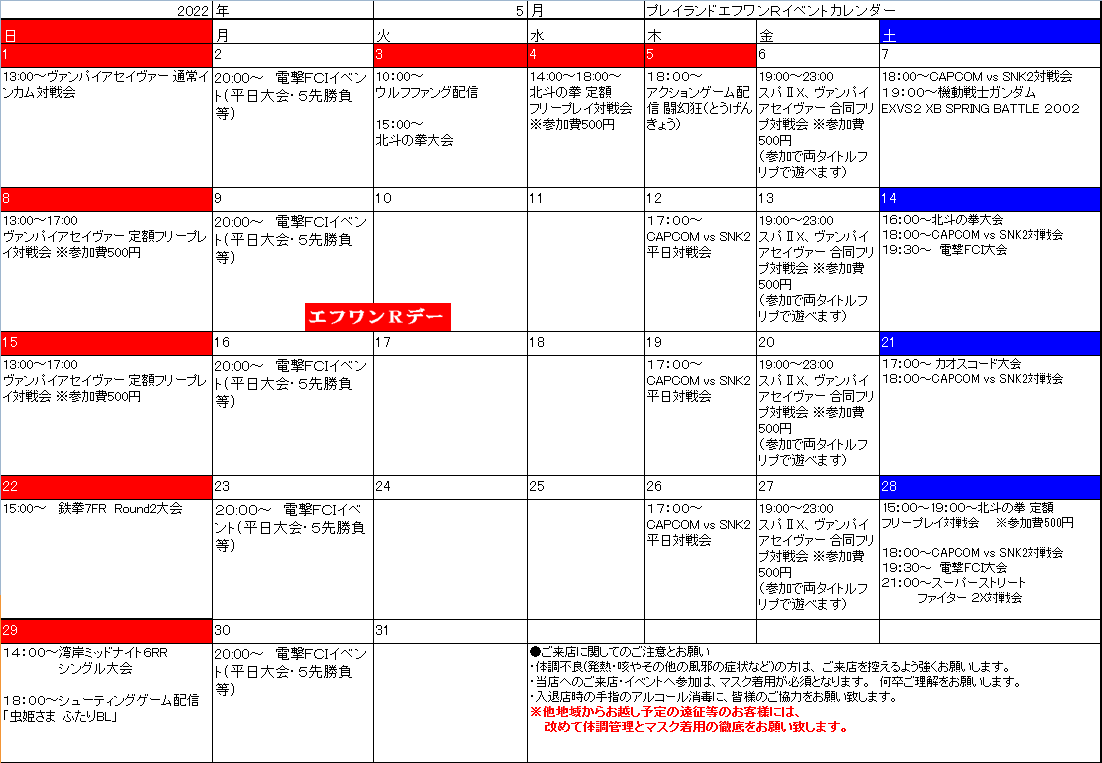 それでは以下、5月のイベントカレンダーとなります。