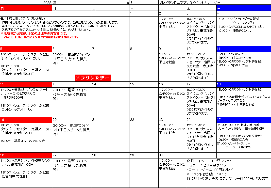 それでは以下、6月のイベントカレンダーとなります。