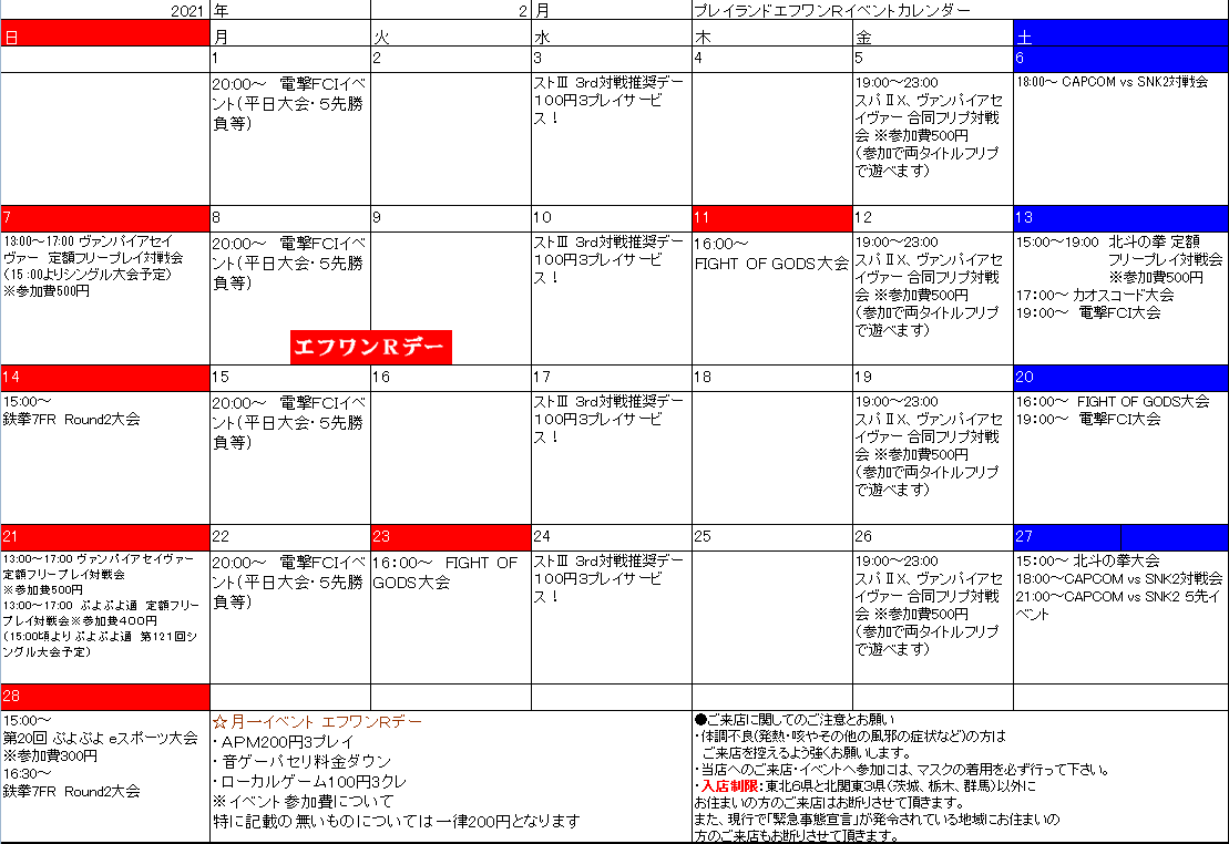 2月のイベントスケジュールが完成いたしました。