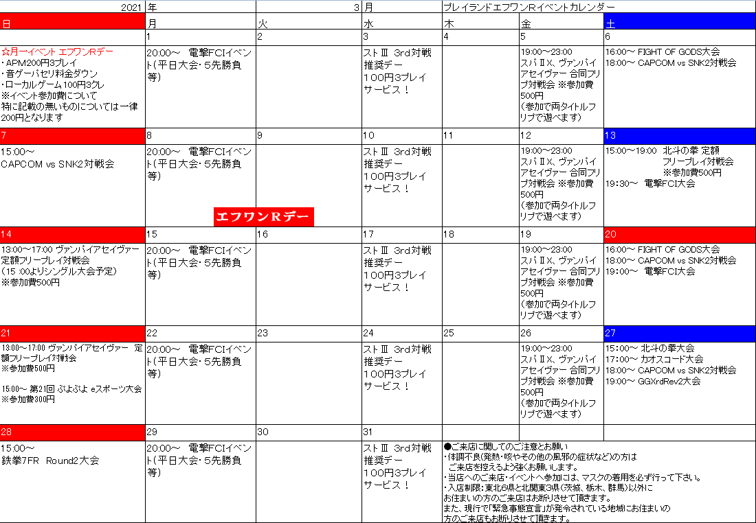 ということで、3月のイベントスケジュールが完成いたしました。